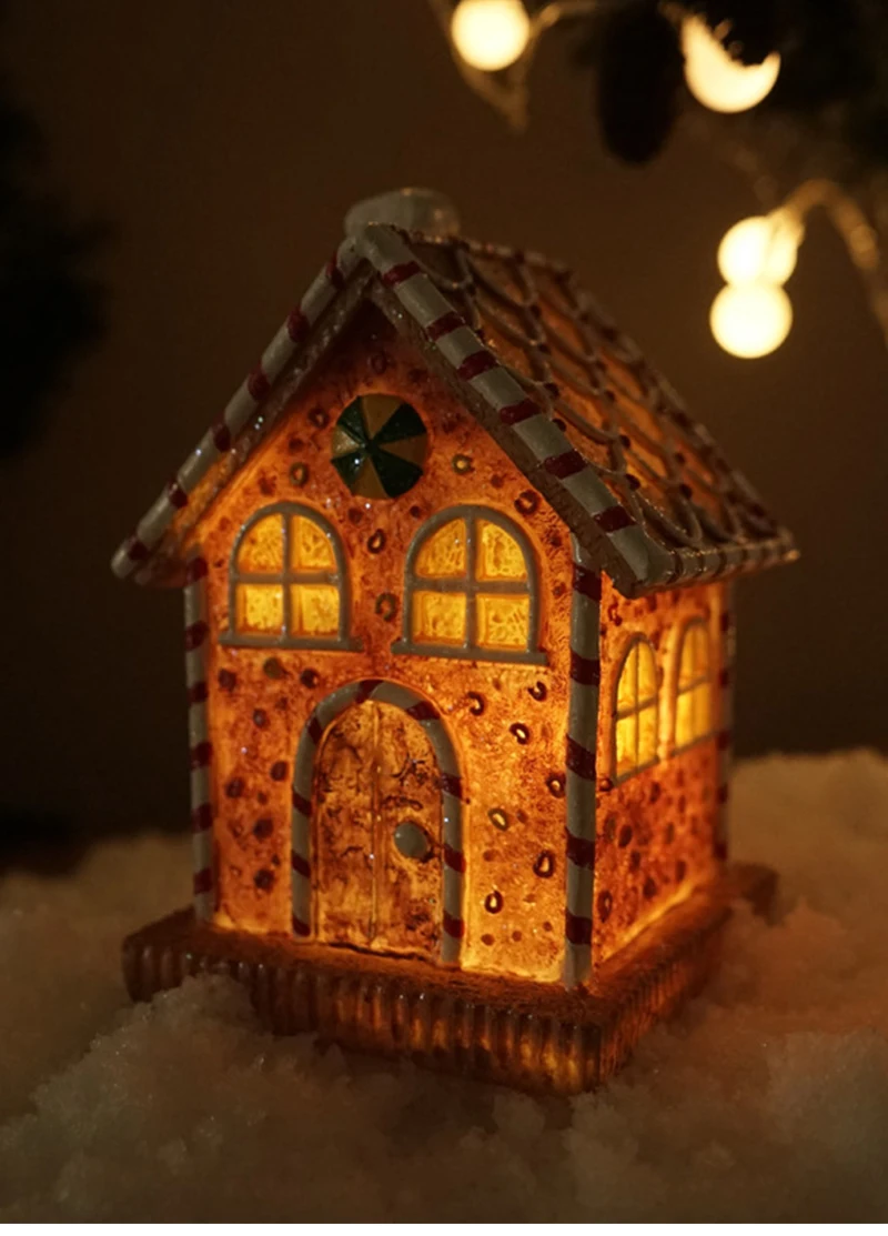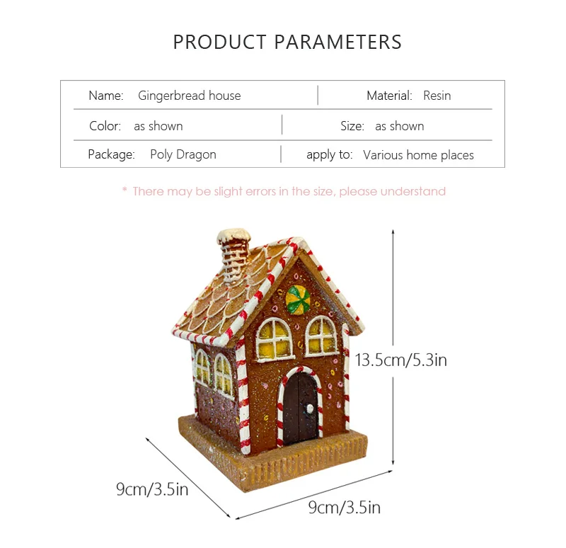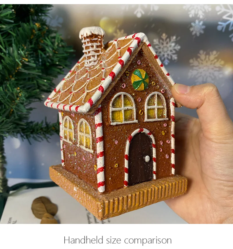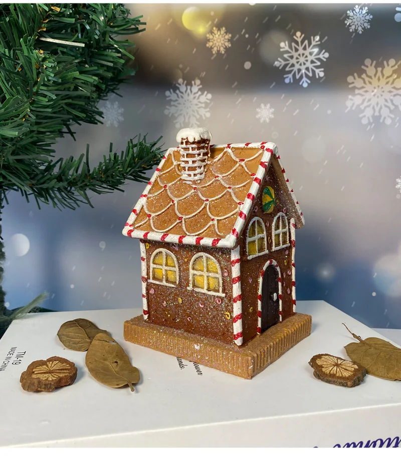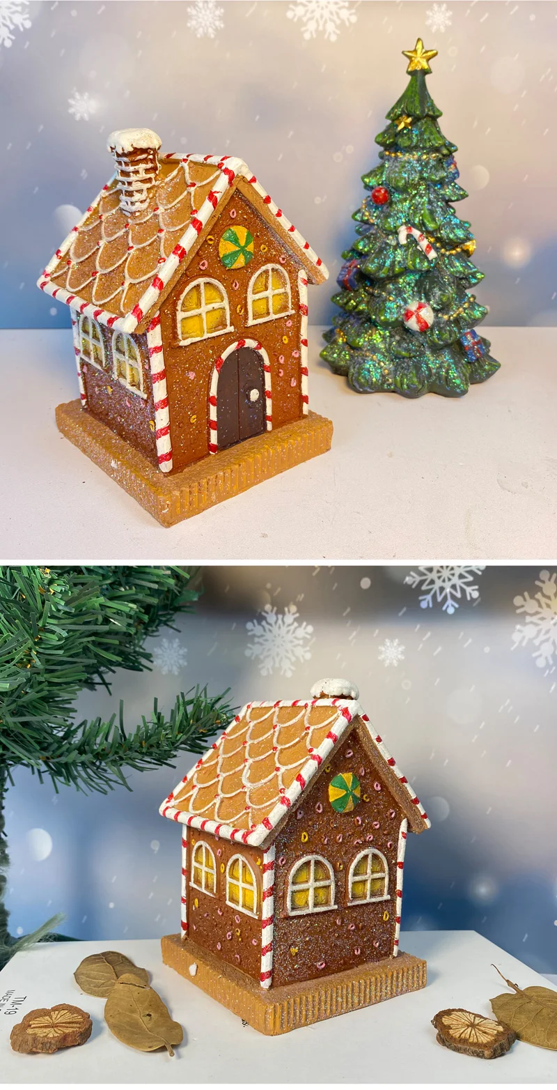 SAAKAR Resin Christmas Nightlight Cabin Figurines Gingerbread House Home Interior Navada Decor Accessories Handicraft Collection