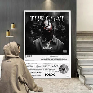 Pop Rap Music Album Cover Polo G Poster Aesthetic Rapper Hip Hop Rock The Goat Hall Of Fame Canvas Print Wall Art Room Decor