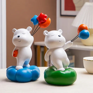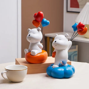Nordic Harz Bär mit Ballon Ornament kreative niedliche Tier Handwerk Home Office Schreibtisch Dekoration schöne Heilung kleine Gegenstände Geschenke