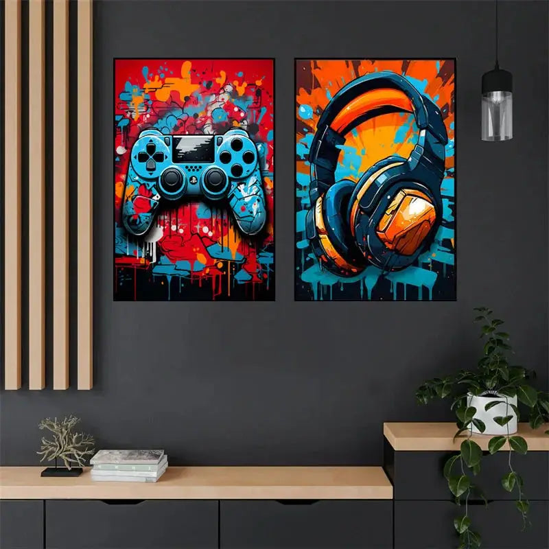 Colorful Game Controller Canvas Painting Graffiti Gaming Poster Gamepad Print Picture for Boys Gamer Bedroom Wall Art Home Decor