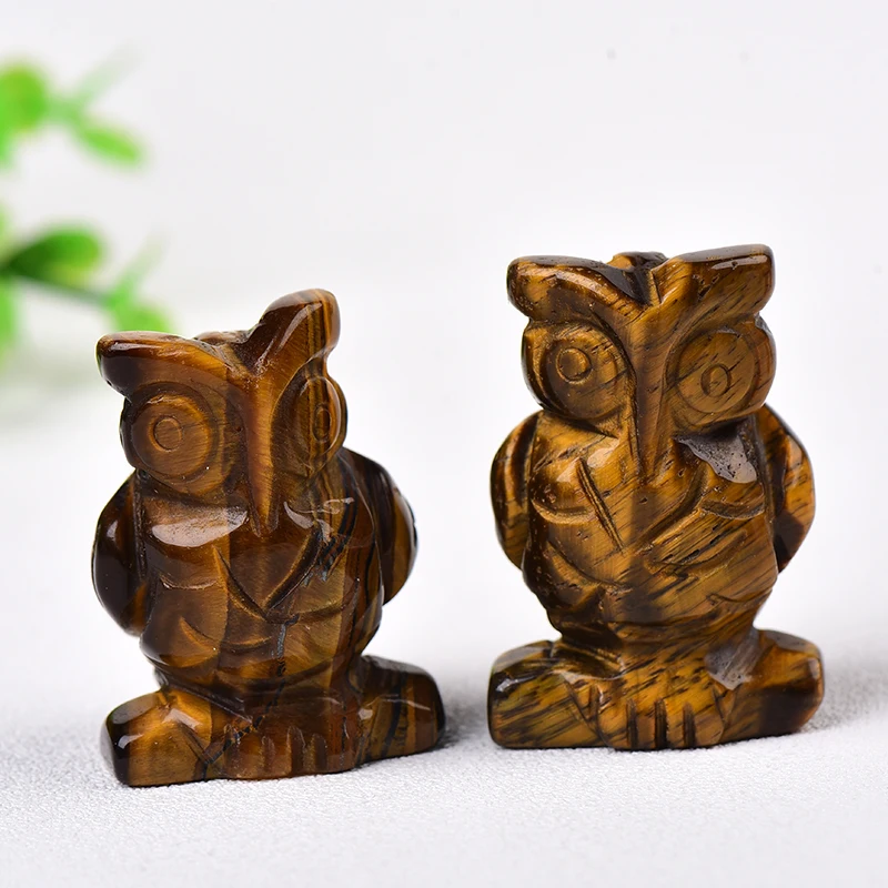 1PC 100% Natural Stone Carved Owl Animal Ornaments Tigers Eye Crystal Stone Crafts Handmade Figurine Home Decor collect DIY Gift