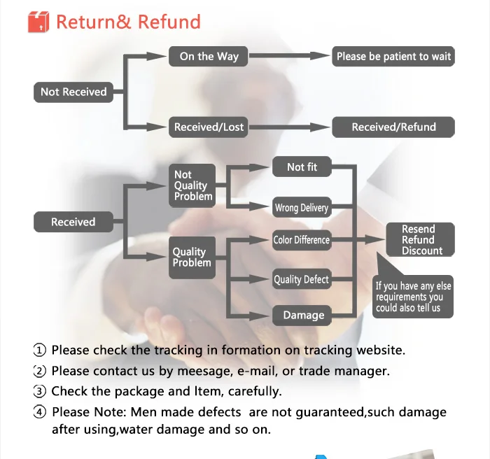 - If the product loses value due to excessive handling, we may reduce the refund amount.