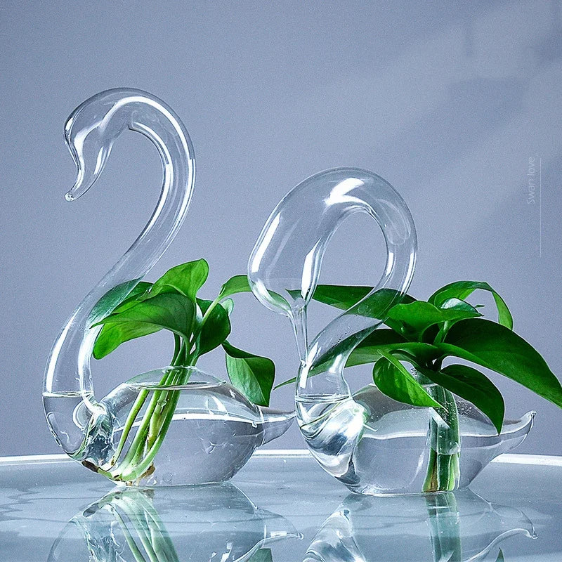 Creative Glass Love Swan Vase Wedding Gift Home New House Decoration Crafts Decorative Vases Ceramic Office Decor Europe