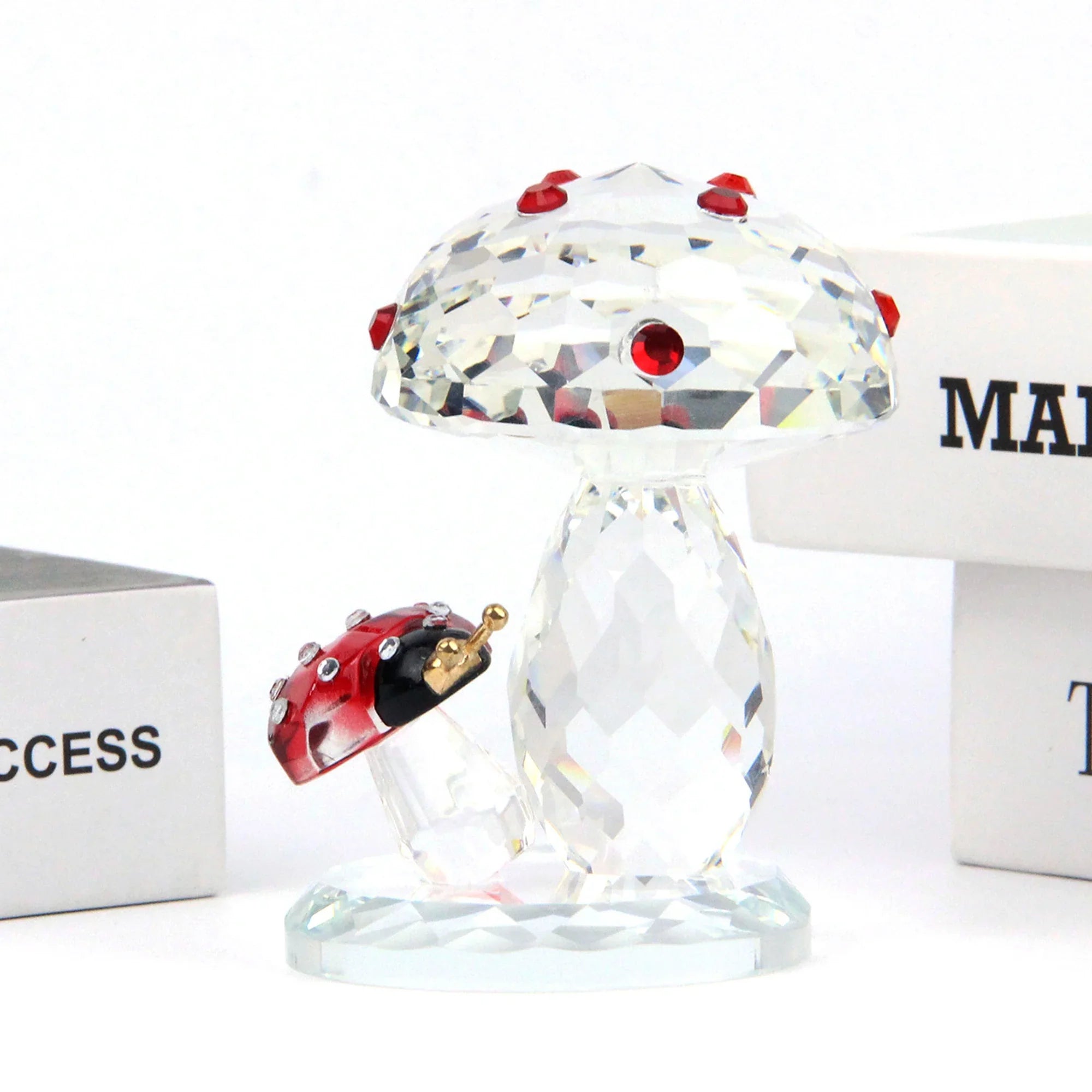 Crystal Ladybug Mushroom Figurine Art Glass Animal decoration Paperweight Home Decor Ornament Collectible Gift Birthday Gifts