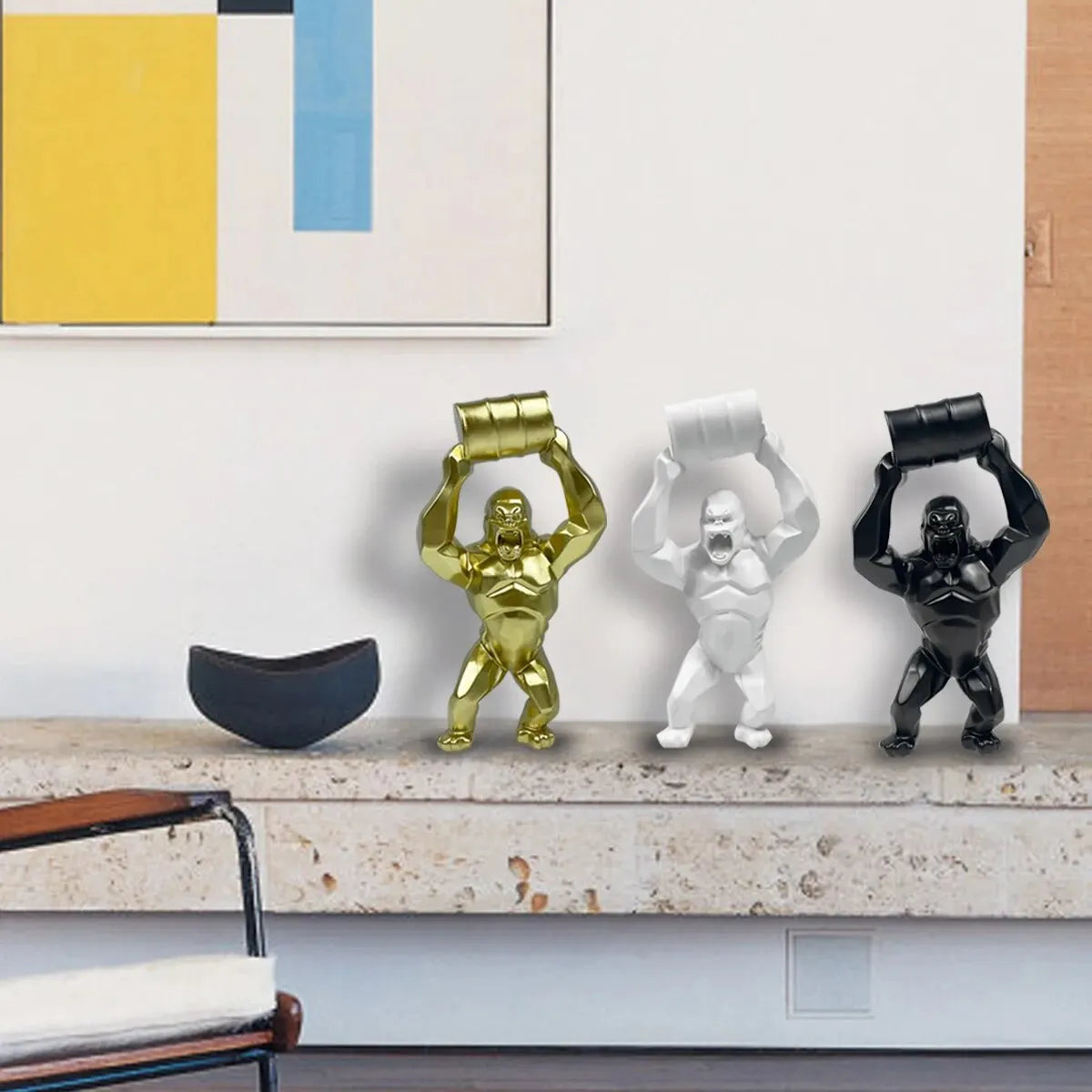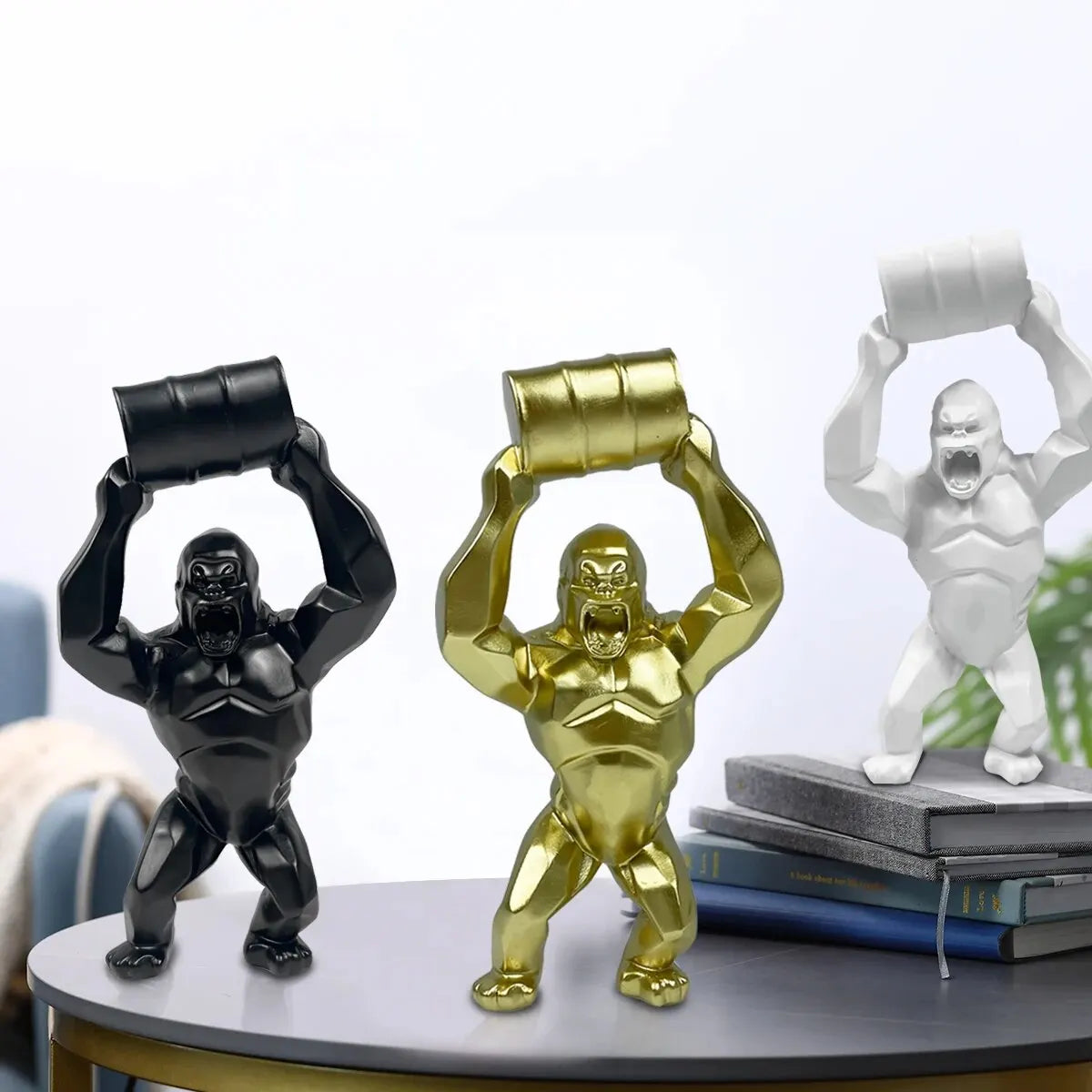 Oil Barrel Gorilla Statue, Resin, Statue, Tabletop Animal Accessories, Home Decoration, Statue Ornaments.