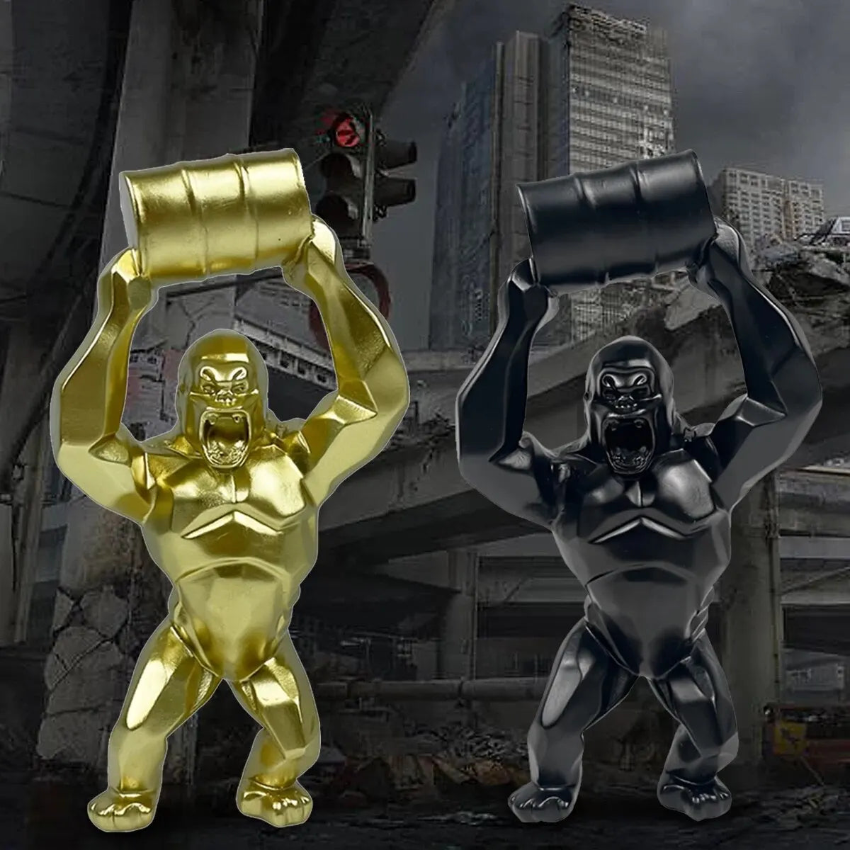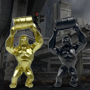 Oil barrel gorilla statue, resin, statue, tabletop animal accessories, home decoration, statue ornaments.